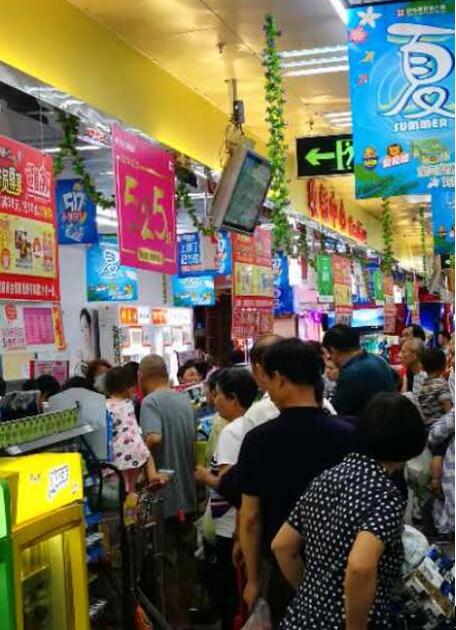 5月25日,"翼支付525"购物狂欢节进入"5折立减"的爆点活动阶段。记者在沃尔玛、物美等门店看到,收银台处一早就排起了长龙,消费者热情高涨。不只在北京,石家庄北国、广东人人乐、浙江世纪联华等多地超市同样挤满了翼支付用户,形成全国近万家超市的用户集中消费的场面。