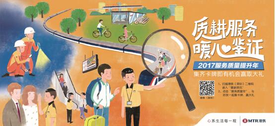 港铁(深圳)4号线作为横穿深圳南北的纵贯线,始终坚持"心系生活每一程"的服务理念,不断创新,努力从各方面提升服务。2017年是深圳的"质量提升年", 港铁(深圳)举行贯穿全年"质耕服务 暖心鉴证"的活动,向社会展现并将邀请广大市民朋友共同来参与见证4号线的服务提升。活动前期通过线上活动集卡的方式,创新地向乘客发布了8大服务质量提升承诺。后期港铁(深圳)公司将举行质量提升成果发布大会,邀请鉴定代表团及嘉宾进行成果展示,并向突出贡献的员工进行嘉奖,全面总结港铁(深圳)的"质量服务提升年"。