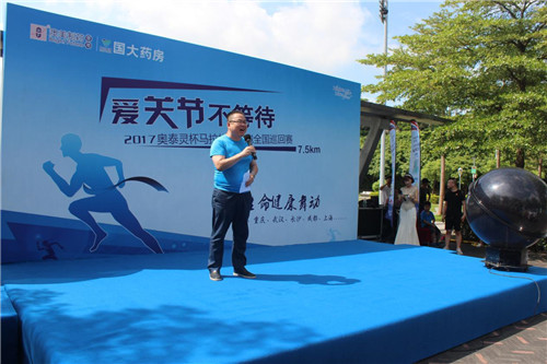 最后由国大药房工会主席李向文、国大药房运营总监李文介、深圳二院主任医师田长庆、澳美制药 OTCBU 销售总监杨伟杰,共同开启了“爱关节,不等待”2017年奥泰灵杯马拉松城市健康跑深圳站的起跑仪式。