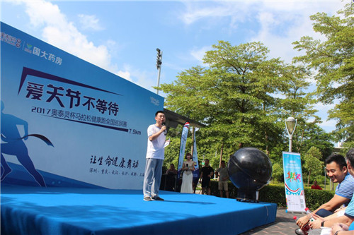 为了庆祝香港回归祖国20周年,同时也为了即将到来的世界关节炎日,深圳国大药房携手香港澳美制药,8月11日在风景宜人的深圳湾公园,迎来了“爱关节,不等待”2017年奥泰灵杯马拉松城市健康跑比赛的隆重开幕。