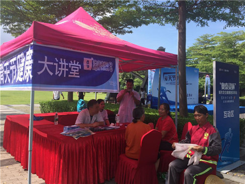 深圳市第二人民医院骨科田长庆主任医师也来到现场,他介绍了骨关节病的防治知识,同时指出氨糖在各关节中的作用,也叮嘱大家在日常运动时候要注意保护好关节,预防骨关节疾病的发生。