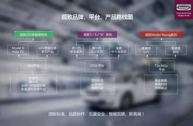 第一阶段,观致最迫切的,还是要出产品,最快速的方法就是在传统汽车平台上,进行电动化升级改造,当然,这不是长久之计;第二阶段,开发专有平台,Model K-EV是观致在这一领域的一次尝试,GEV平台推出之后,可以整合很多技术,诸如轻量化技术、模块化技术,包括自动驾驶、先进智能驾驶等,从产品角度,GEV平台将有能力推出从A0级到B级的产品,包括SUV、轿车、跨界车型、MPV等,这也是电动车专业平台的一个特点和优势,它可以非常灵活。