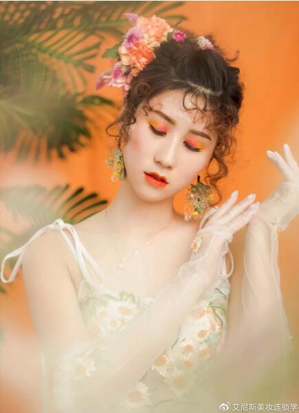 橘色眼妆洋溢青春元气,