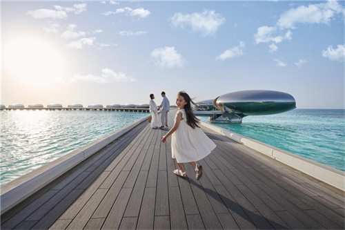 奇遇阿拉伯,见证古今交汇——影片伊始,镜头跟随一家人穿越辽阔的沙漠,探索宏伟的埃尔奥拉石墓、巴拉德老城和德拉伊耶古城,仿佛穿越沙特悠久的历史长河。画面随后切换至灯火辉煌的利雅得——现代都市的摩天大楼与恢宏建筑在夜色中熠熠生辉,象征着沙特蓬勃的当代活力。影片的最后,镜头转至红海之滨,谢巴拉度假村以未来感十足的建筑造型漂浮于蔚蓝海面之上,象征着沙特在创新与优雅之间的完美平衡。