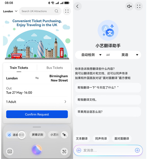 如果在海外体验异国风情时,碰上语言壁垒?不要怕,问问小艺。在购票、打车等外文的App或网页界面,唤醒小艺并使用“连续翻译”,就能实现边滑动边浏览边翻译,迅速获取服务。在餐厅点餐、街头问路等场景,也可以直接跟小艺说“打开小艺翻译”,该翻译Agent提供文本翻译、同声传译、面对面翻译功能,让交流变丝滑无障碍。小艺翻译相关功能支持21种语言翻译服务,助你轻松畅游各国。