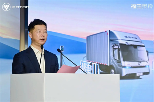 奥铃事业部研发副总裁韩磊对奥铃极电进行深入解读。他介绍,奥铃极电围绕“极长续航、极高安全、极全智能、极快效率、极久耐用、极享舒适”六大核心体验打造,依托“启明星”平台的高效电驱系统与高刚性车身结构,在能效与安全上树立了纯电轻卡新标杆。车辆同时支持功能的持续拓展,为用户提供面向未来的智慧运力解决方案。