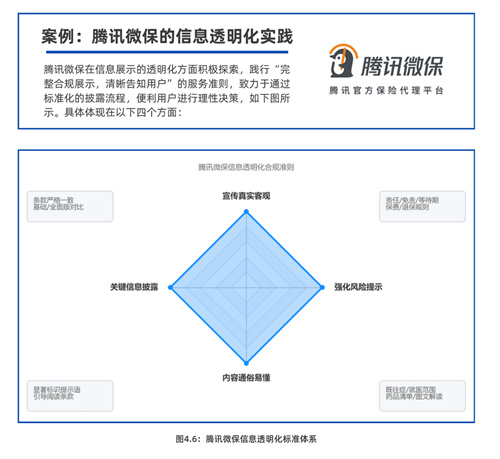 腾讯微保在信息展示透明化方面积极探索,践行“完整合规展示,清晰告知用户”的服务准则,致力于通过标准化披露流程,帮助用户做出理性决策。