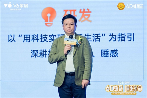 V6家居洞察年轻消费者的消费偏好和消费认知—材料科技才是舒适的根本,用科技造出好产品,让好产品自己说话。正因如此,江涛表示V6家居升级了全新slogan“用科技实现舒适生活”,6D蜂巢芯新品就是在这一理念下研发出的革新睡眠芯材技术的重磅产品。自上市以来火爆终端,从销售端验证了好产品品质,6D蜂巢芯床垫定义了好床垫的“757”行业标准,6D蜂巢芯沙发定义了好沙发的“6551”行业标准。